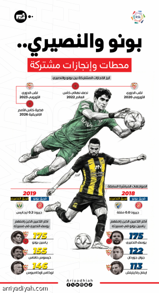 بونو والنصيري.. محطات وإنجازات مشتركة